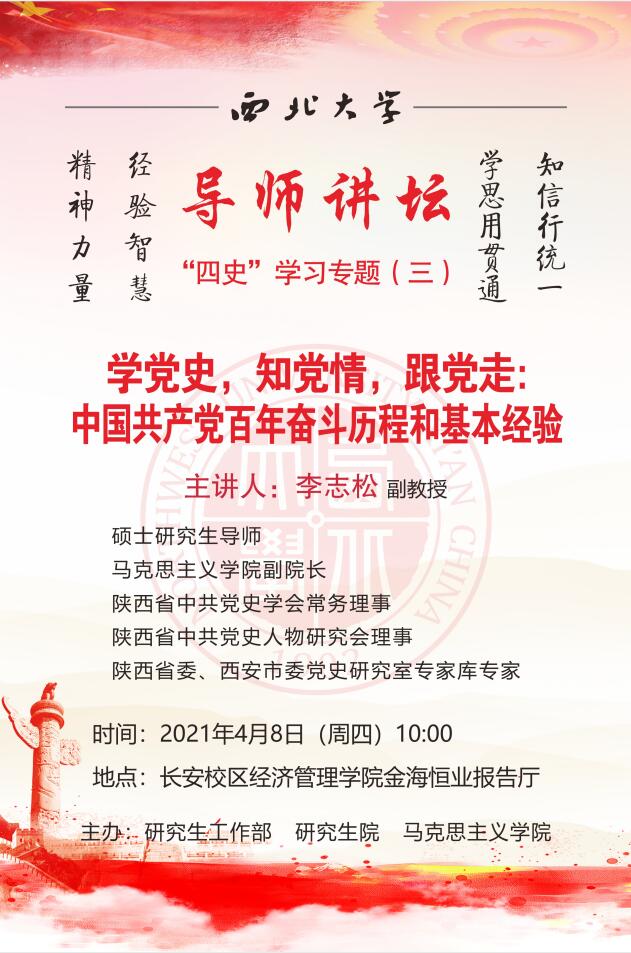 导师讲坛“四史”学习专题(三):学党史,知党情,跟党走:中国共产党百年奋斗历程和基本经验