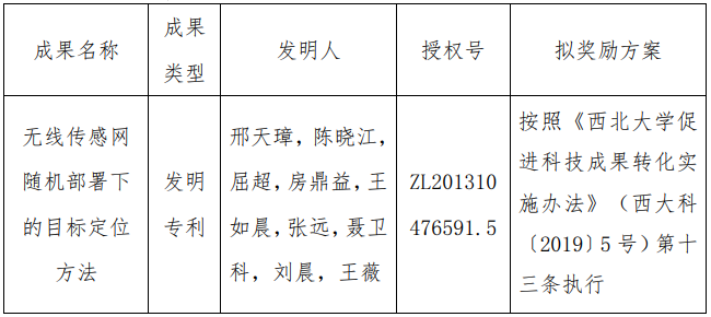 按照《乐动平台官网促进科技成果转化实施办法》(西大科〔2019〕5号)相关规定,拟对我校信息学院邢天璋副教授作为成果负责人的1项发明专利权实施转化,现将相关信息公示如下: