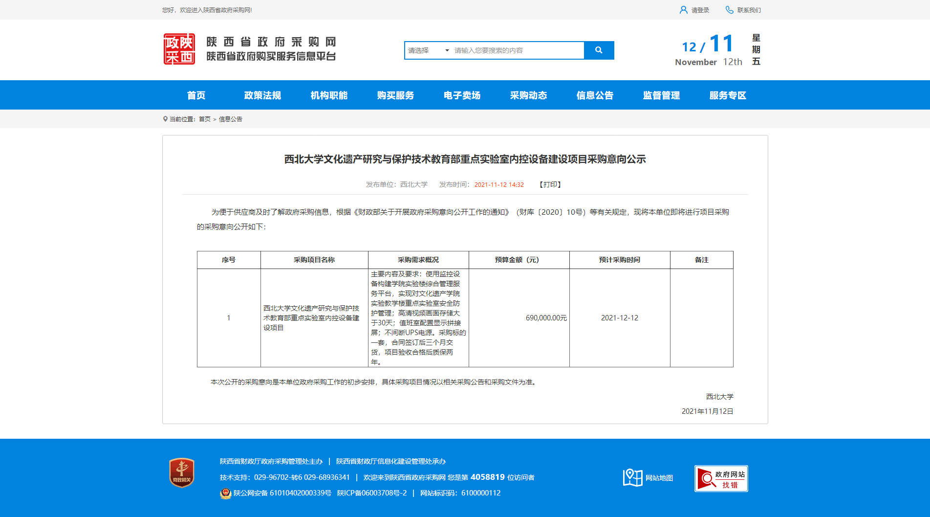 乐动平台官网文化遗产研究与保护技术教育部重点实验室内控设备建设项目采购意向公示