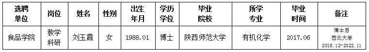 经用人单位推荐,人力资源部审查,学校教学督导及院系相关专家考核,我校拟确定下列人员来校工作。本着公平、公正、公开的原则,现将本次拟选聘人员基本情况公示如下:
