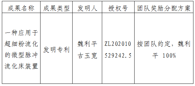 按照《乐动平台官网促进科技成果转化实施办法》(西大科〔2019〕5号)相关规定,拟对我校化工学院魏利平副教授作为成果负责人的1项发明专利权实施转化,现将相关信息公示如下: