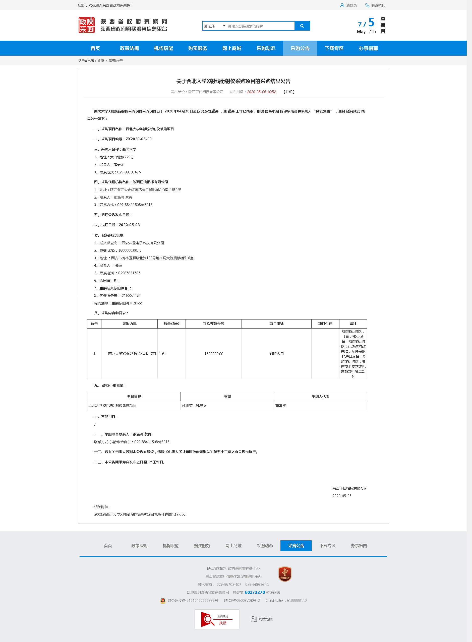 关于乐动平台官网X射线衍射仪采购项目的采购结果公告