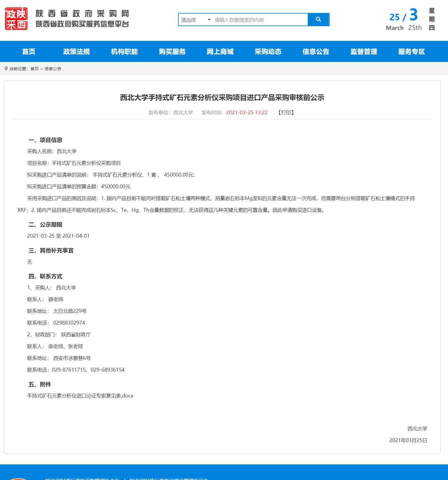 乐动平台官网手持式矿石元素分析仪采购项目进口产品采购审核前公示